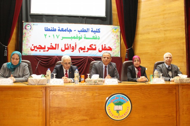 كرم الدكتور مصطفى الشيخ نائب رئيس جامعة طنطا للدراسات العليا والبحوث، اليوم أوائل الخريجين بكلية الطب دفعة نوفمبر 2017 فى الحفل الذى أقيم بمقر إدارة الجامعة، حيث قام بتسليمهم شهادات التقدير.