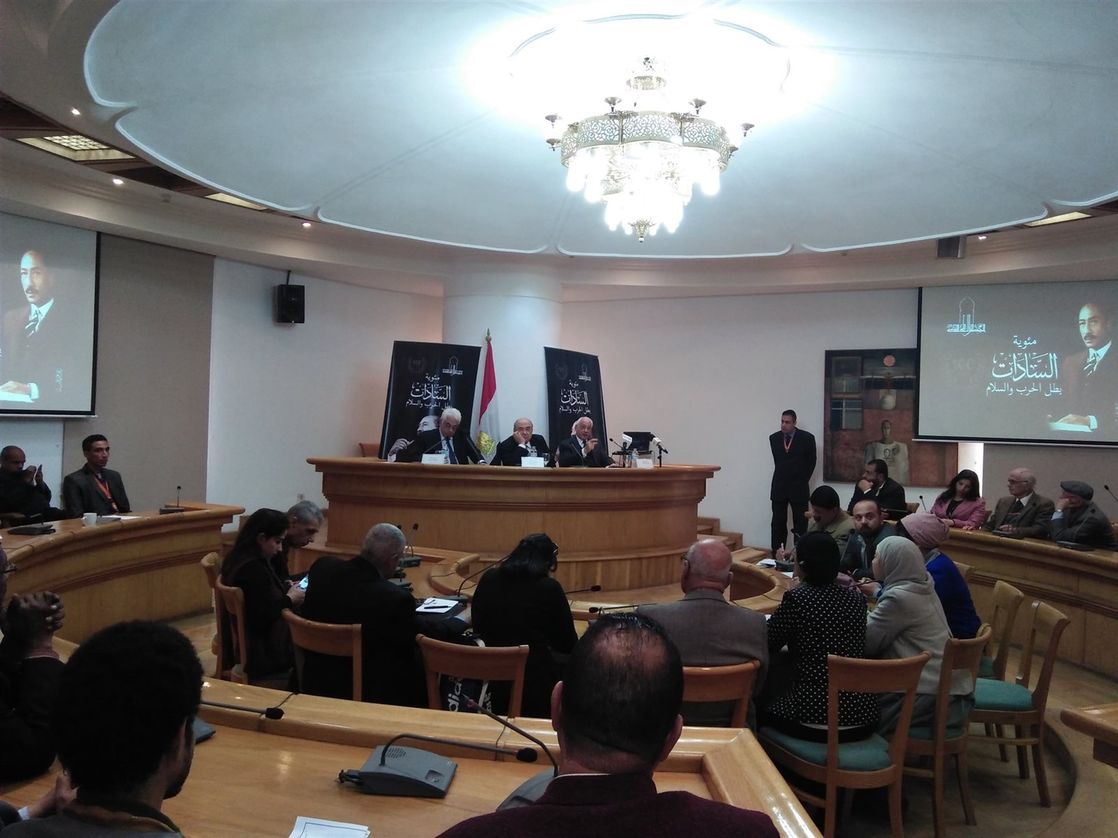 بدأ مدير الجلسة الدكتور مصطفى الفقى الحديث مشيرًا إلى أن الرئيس محمد أنور السادات يعد شخصية تاريخية استثنائية بامتياز، بداية من انضمامه لحركة الضباط الأحرار، وإلقائه بيان ثورة يوليو بالإذاعة المصرية بصوته، وهو ما جعله عرض للخطر آنذاك.