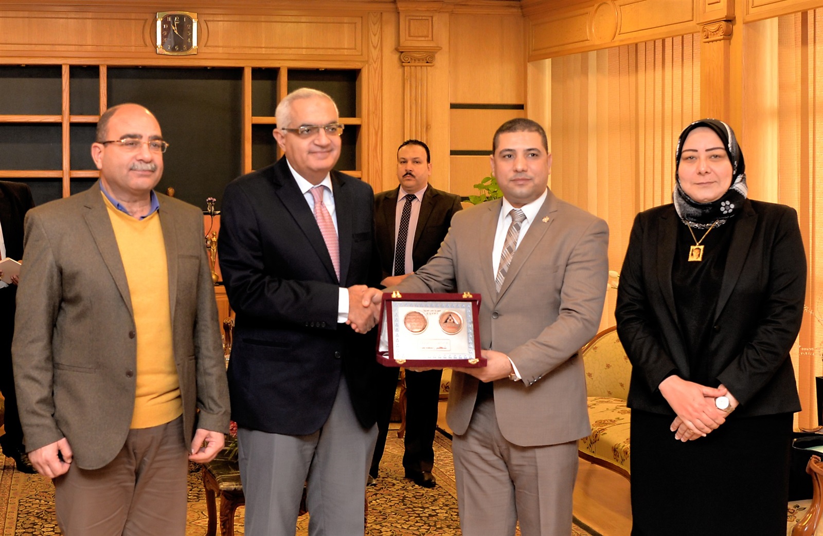 استقبل اليوم الاثنين الدكتور أشرف عبد الباسط رئيس جامعة المنصورة ، الدكتور كمال جاد شاروبيم محافظ الدقهلية الدكتور عاشور أحمد عمرى رئيس الهيئة العامة لتعليم الكبار لمناقشة تفعيل برتوكول المجلس الأعلى للجامعات لمحو الأمية وأيضا لتفعيل برتوكول التعاون بين هيئة تعليم الكبار وجامعة المنصورة ممثلة فى كلية التربية.
