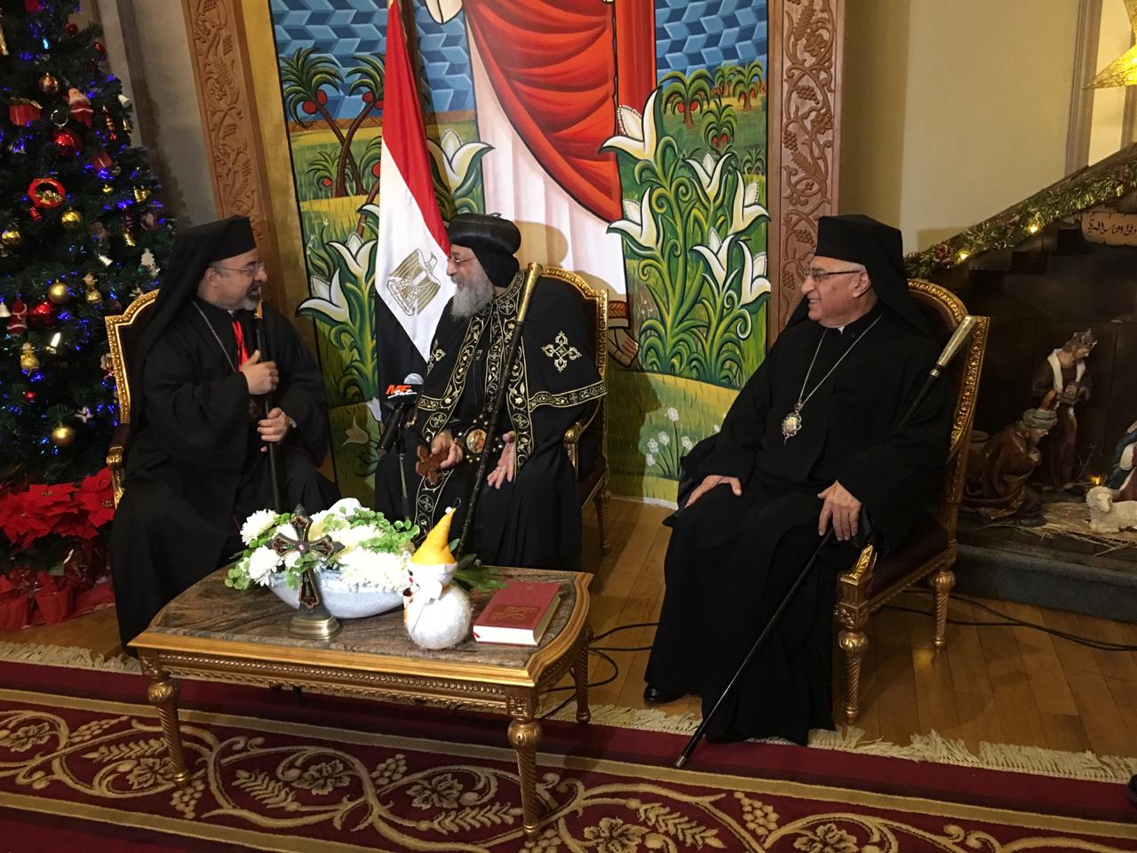 قدم البطريرك إبراهيم إسحق بطريرك الأقباط الكاثوليك والبطريرك يوسف العبسيّ بطريرك أنطاكية وأورشليم والإسكندرية وسائر المشرق للرّوم الملكييّن، ووفد من الكنيسة الكاثوليكية من المطارنة والكهنة والراهبات والرهبان والعلمانيين، التهنئة، إلى البابا تواضروس بمناسبة عيد الميلاد المجيد، بالمقر البابوي في العباسية.