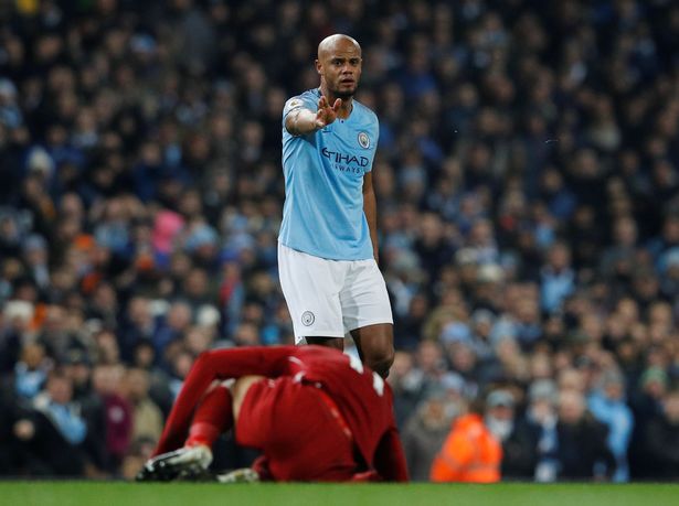 وسقط صلاح بعد تدخل عنيف من مدافع السيتي وقام الحكم على الفور باحتساب خطأ لصالح النجم المصري وهو ما دفع كومباني بتوجيه لفظ خارج للاعب المصري.