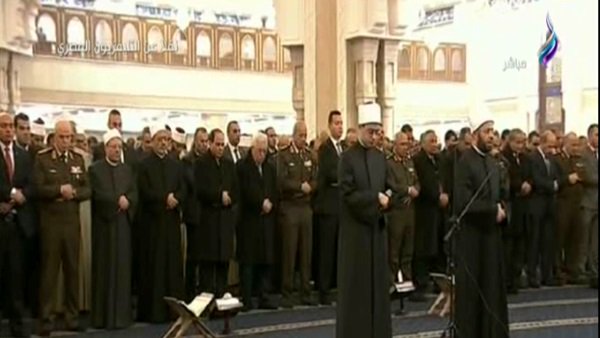 حضر الصلاة الدكتور أحمد الطيب شيخ الأزهر الشريف، والدكتور شوقي علام مفتي الجمهورية، والدكتور مختار جمعة وزير الأوقاف.