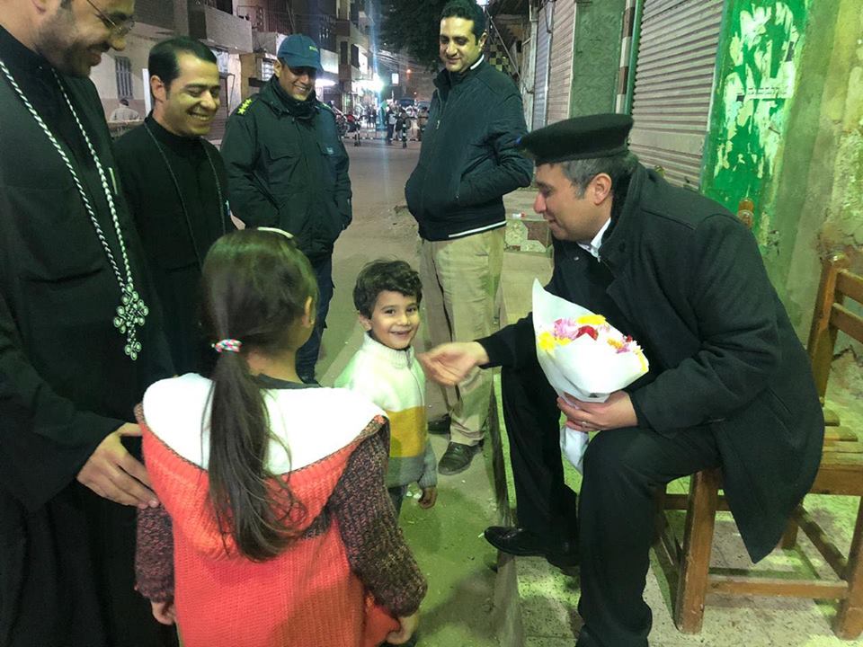 قدم أطفال من أبناء مطرانية المنيا باقات زهور لرجال الأمن ممن يقومون بعملهم في محيط المطرانية أثناء تواجدهم لتأمين احتفالية عيد الميلاد المجيد في لفتة طيبة من الأطفال تؤكد عميق تقديرهم وشكرهم ووعيهم بالدور الذى تقوم به الأجهزة الأمنية.