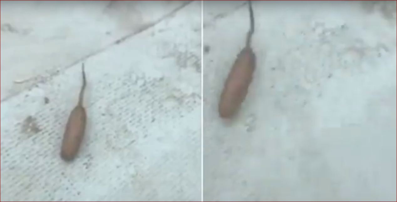 شاهد.. ظهور لمخلوق غريب بجسد أسطواني وذيل فأر