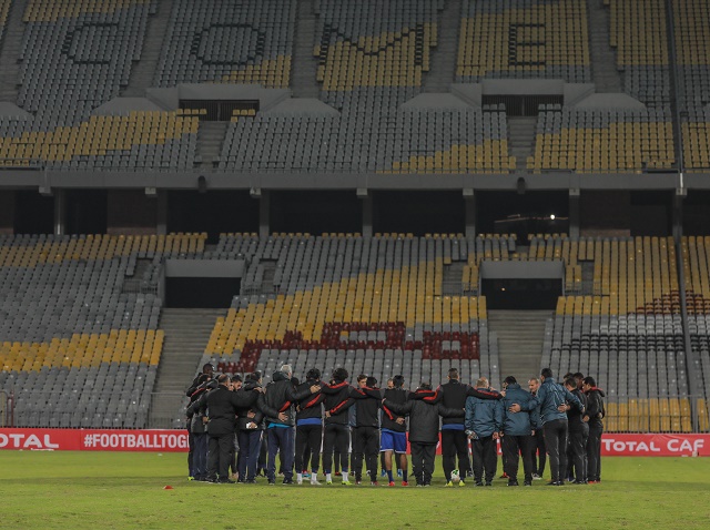 عقد مارتن لاسارتي، المدير الفني للفريق الأول لكرة القدم بالنادي الأهلي، محاضرة مع اللاعبين في أرض الملعب قبل انطلاق المران المسائي للحديث عن أهمية مباراة فيتا كلوب.
