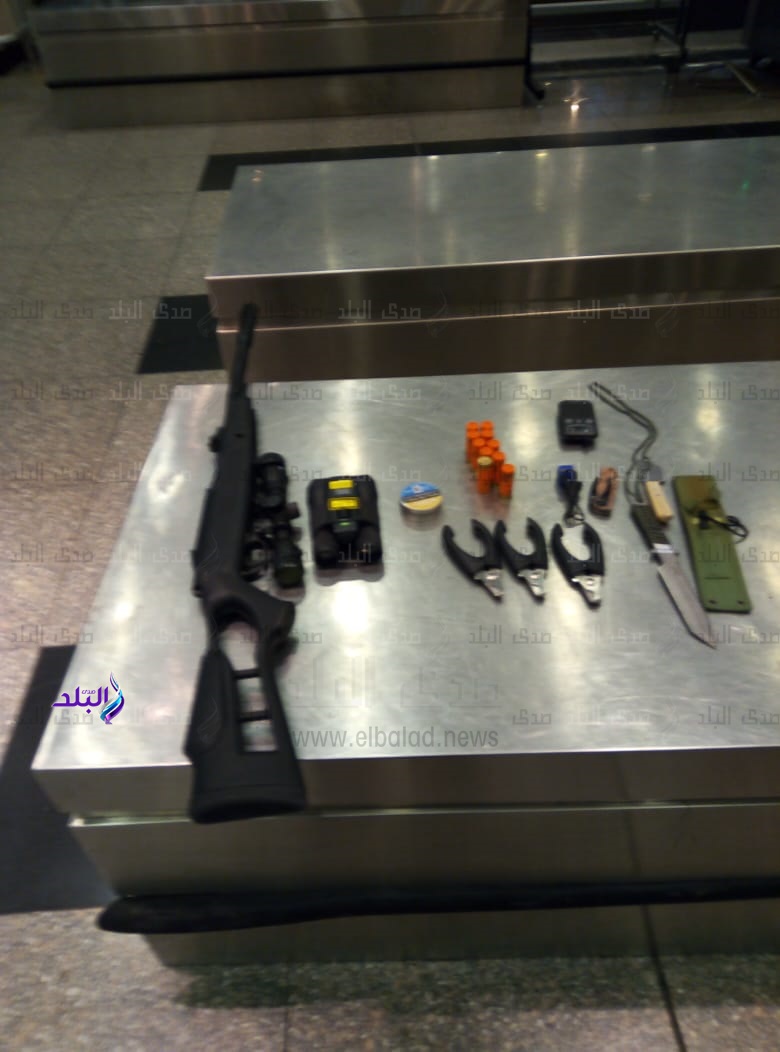 جمارك مطار القاهرة تضبط بندقية وأسلحة بيضاء بحوزة راكب أمريكي.. صور