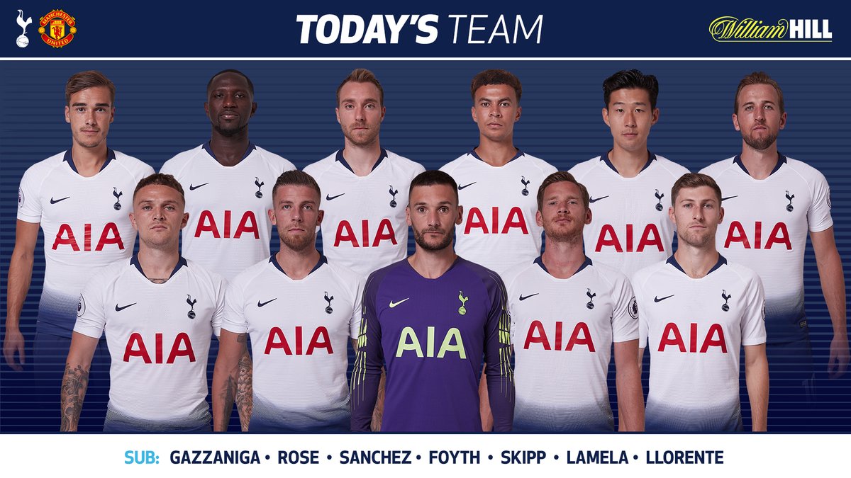 أعلن ماوريسيو بوتشيتينو المدير الفني لنادي توتنهام عن تشكيلة فريقه لمواجهة مانشستر يونايتد والمقرر إقامتها فى السادسة والنصف مساء اليوم، الأحد، على ملعب "ويمبلى"، فى قمة منافسات الجولة الـ22 من عمر مسابقة الدورى الإنجليزى الممتاز "البريميرليج".