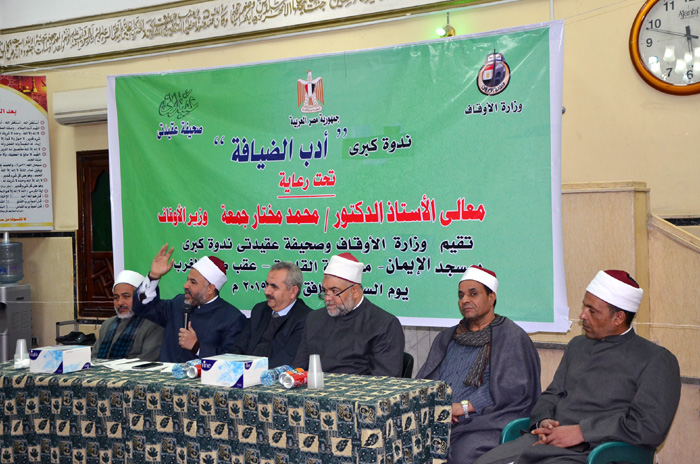 نظمت وزارة الأوقاف، ندوة علمية تحت عنوان:” أدب الضيافة ”بمسجد "آل رشدان" بالقاهرة ، حاضر فيها كل من الدكتور خالد صلاح الدين – وكيل مديرية أوقاف القاهرة ، والدكتور محمد قرني – مدير إدارة شرق مدينة نصر ، الشيخ عبد الفتاح محمد أحمد – إمام مسجد آل رشدان.