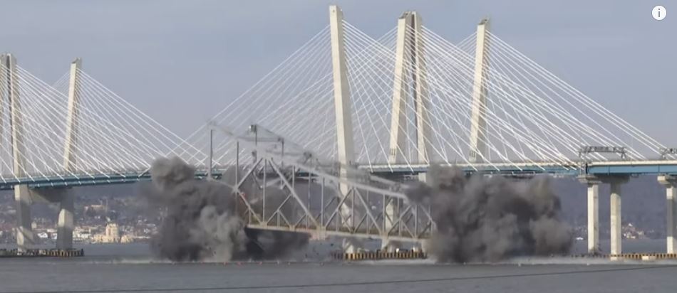 وجرت عملية التفجير وسط طقس بارد بواسطة كميات كبيرة من المتفجرات التي حولت الجسر خلال لحظات إلى ركام غرق في نهر هدسون، فيما بقي الجسر الجديد شامخا بلمعانه.