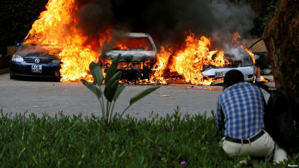 كان الرئيس الكيني أوهورو كينياتا أعلن في وقت سابق اليوم، أن عناصر حركة الشباب الإرهابية نفذت هجومًا في مجمع فندقي في نيروبي وأوقع 14 قتيلًا على الأقل، "تمت تصفيتهم" على أيدي قوات الأمن في ختام حصار استمر نحو 20 ساعة، مضيفًا أنه تم نقل أكثر من 700 مدني من الفندق الذي شهد الهجوم إلى أماكن آمنة.