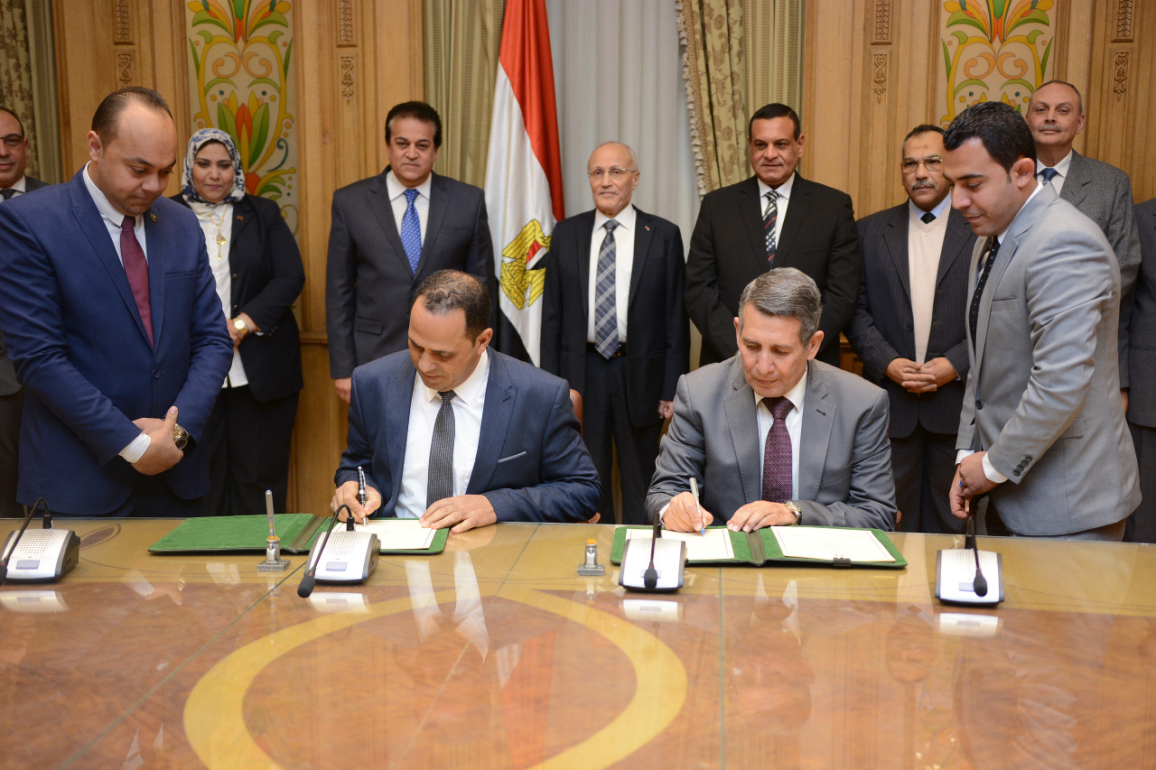 شهد الدكتور محمد سعيد العصار وزير الدولة للإنتاج الحربي والدكتور خالد عبد الغفار وزير التعليم العالي والبحث العلمي واللواء هشام آمنة محافظ البحيرة، مراسم توقيع عقد بين الهيئة القومية للإنتاج الحربي متمثلة فى شركة الإنتاج الحربي للمشروعات والاستشارات الهندسية والتوريدات العامة وجامعة دمنهور بحضور الدكتور عبيد عبد العاطى صالح رئيس الجامعة وذلك بديوان عام وزارة الإنتاج الحربى.