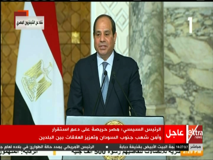 وتابع:"أؤكد لكم أن مصر تحرص كل الحرص على دعم استقرار وأمن شعب جنوب السودان، وتعزيز العلاقات بين البلدين على الأصعدة كافة، تأسيسًا على ما يجمع بينهما من مصالح مشتركة متشعبة".