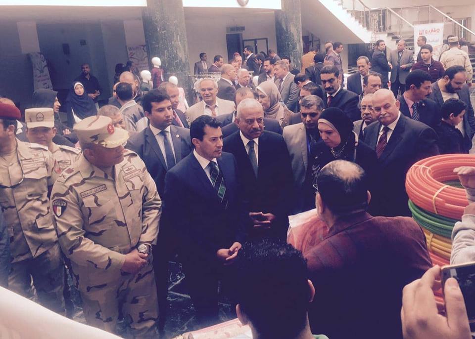 تفقد الدكتور أشرف صبحي وزير الشباب والرياضة، يرافقه اللواء أ ح عبد المجيد صقر محافظ السويس، والدكتورة نيفين جامع، المدير التنفيذي لجهاز تنمية المشروعات المتوسطة والصغيرة ومتناهية الصغر، معرضًا للمشروعات الصغيرة، على هامش افتتاح مؤتمر المشروعات الصغيرة طريقك لمستقبل أفضل بأكاديمية النصر للبترول للتدريب بالسويس.