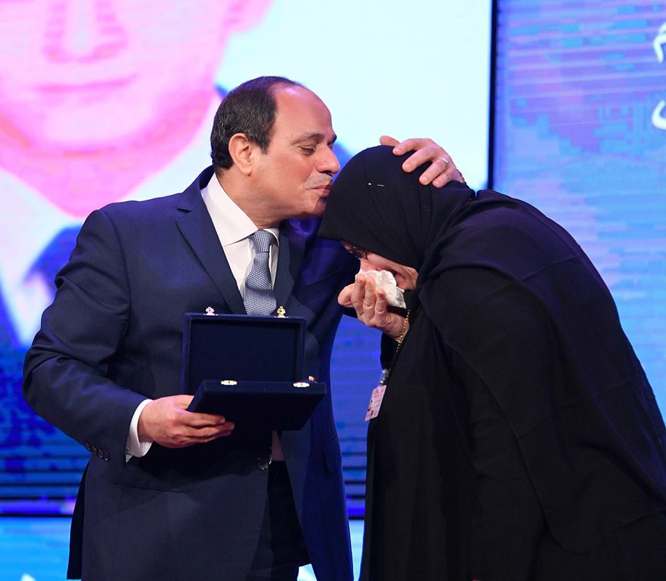 وتبادل الرئيس، التحية مع طفلين من المشاركين بحفل عيد الشرطة الـ67، حيث أرسلا عددا من القبلات له فى الهواء؛ تعبيرًا عن حبهما له.
