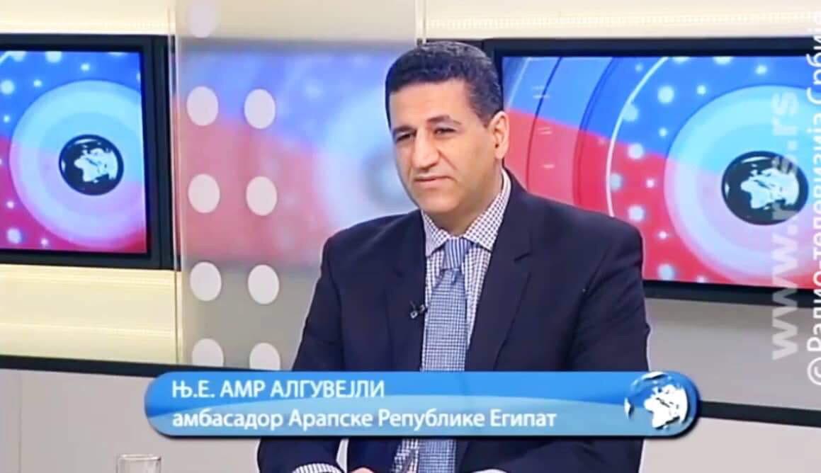 استضاف برنامج "فى العالم" بالقناة الأولى على التليفزيون الصربى، سفير مصر في بلجراد عمرو الجويلي فى لقاء مطول أفرده أحد أهم البرامج الإخبارية لاستعراض مجمل العلاقات الثنائية بين البلدين على مدار العام الماضى، والخطط المتوقعة للعام المقبل.