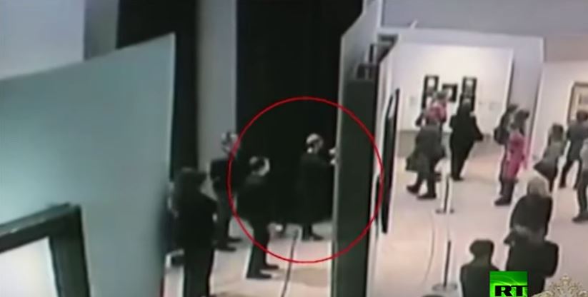 عرضت فضائية " روسيا اليوم" لقطات مصورة للحظة سرقة لوحة ثمينة للرسام أرخيبا كويندجي، من متحف "جاليري تريتياكوف" الواقع وسط موسكو، وذلك وسط الناس والزائرين،حيث رفع السارق اللوحة من على حائط المتحف، وتجول بيها وسط الزائرين وخرج بها من باب المتحف دون ان يعترضه احد.