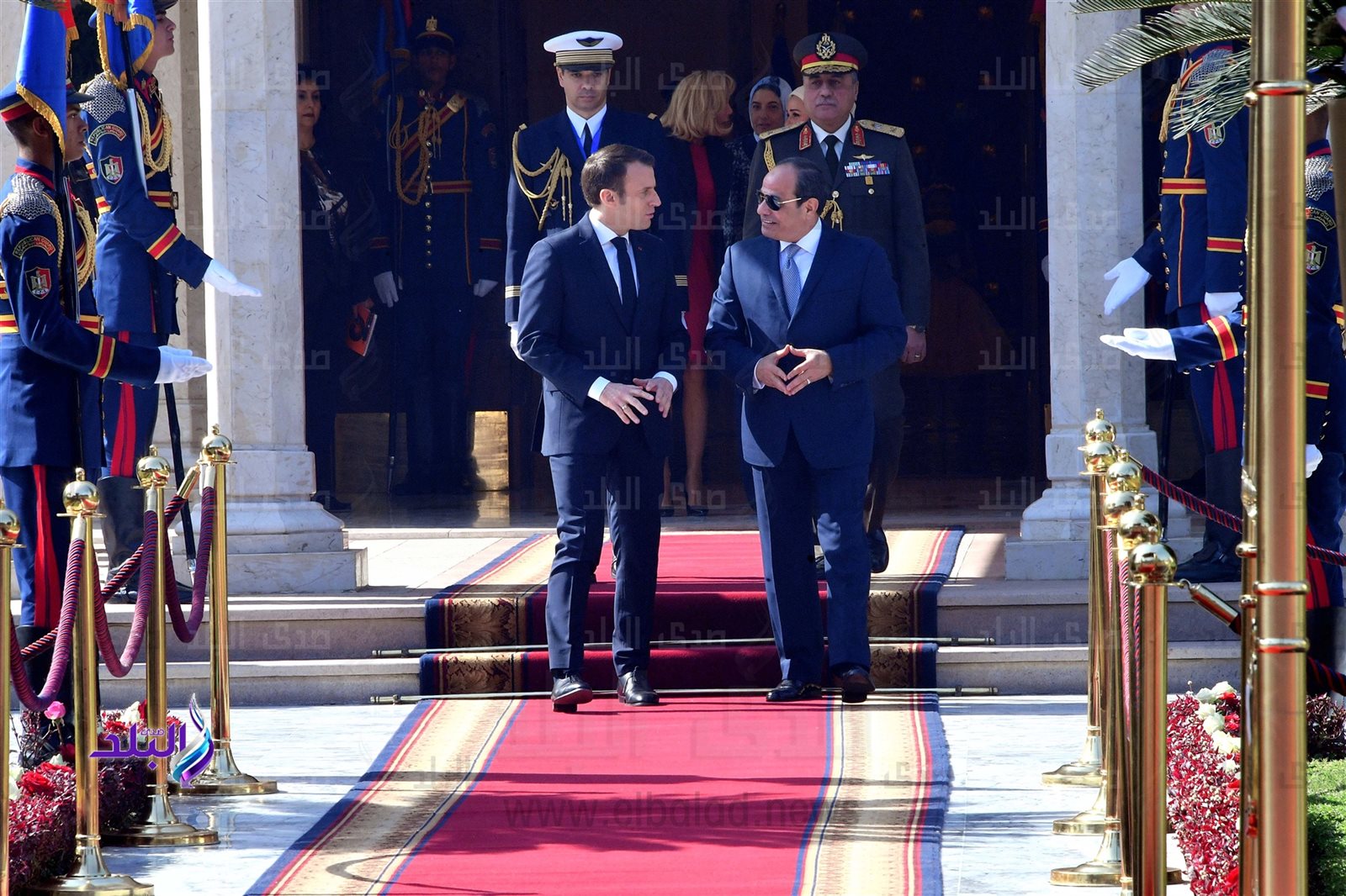 وقال السفير بسام راضي، المتحدث الرسمي باسم رئاسة الجمهورية، إن الرئيس رحب بالرئيس الفرنسي ضيفًا عزيزًا في أول زيارة رسمية له إلى مصر، مشيدًا بالزخم الملحوظ الذي اكتسبته العلاقات الثنائية مؤخرًا بين البلدين الصديقين، والذي انعكس على شتى المجالات، فضلًا عن التوافق الملموس في الرؤى بين دوائر صناعة القرار في كلٍ من مصر وفرنسا بشأن العديد من الأطروحات والملفات الإقليمية والدولية ذات الاهتمام المشترك.
