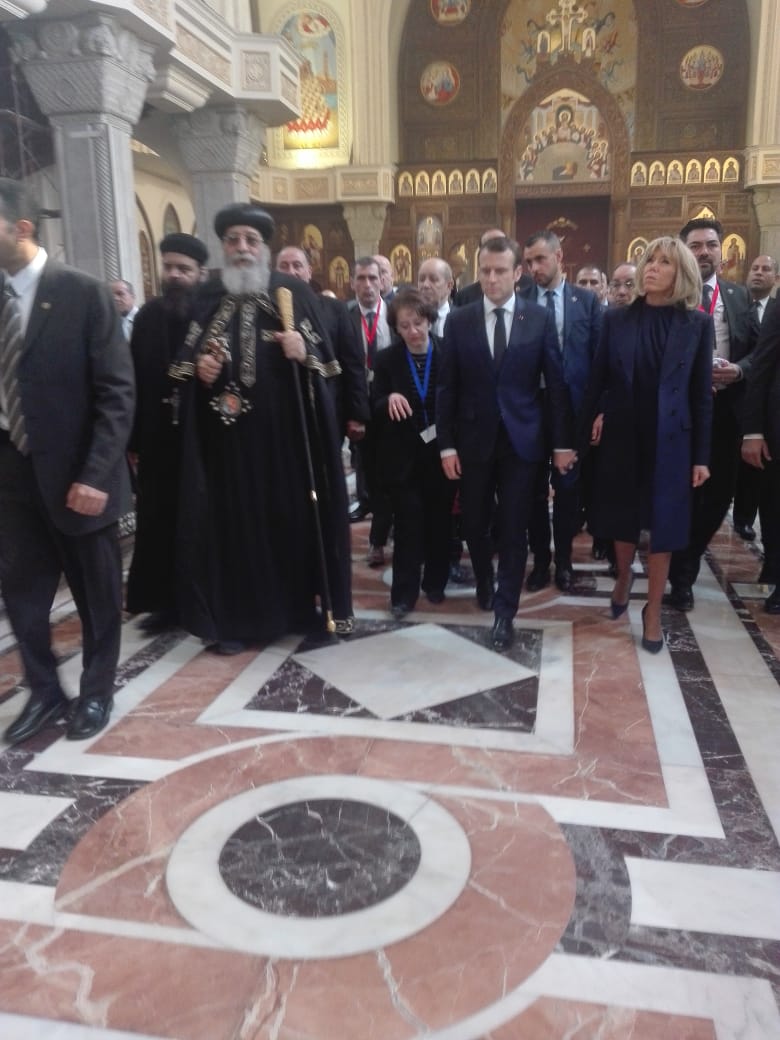وزار الرئيس الفرنسي مقر الكاتدرائية المرقسية عقب تجديدها، كما زار أيضا مقر الكنيسة البطرسية ومزار.