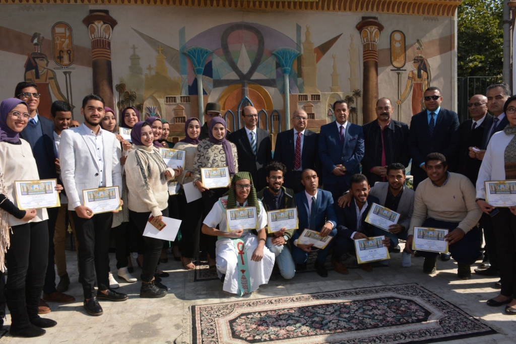 ومن جانبه كشف الدكتور شحاته غريب شلقامى عن حرص الجامعة على استمرار إبراز الجانب الجمالي بالحرم الجامعي والذي ظهر جليًا فى فوز الجامعة بالمركز الثاني على مستوى الجامعات المصرية فى المسابقة الرئاسية لاختيار أجمل جامعة مصرية للعام الجامعي 2018/2019 ، ومن هذا المنطلق أكد أن ذلك النوع من الفنون " الجداريات " يمثل ناقل حي للتاريخ المصري الأصيل على مر العصور .