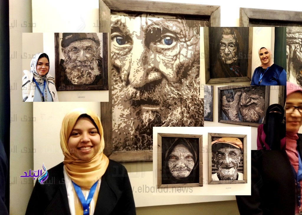 وينشر موقع صدي البلد 40 صورة من المعرض، والذي يضم إبداعات أكثر من 50 عملا فنيا لطلاب الكلية الموهوبين، ويتناول مرحلة زمنية معينة في حياة الإنسان وهي مرحلة كبر السن، ويظهر ذلك من خلال لوحات فنية تم تنفيذها باستخدام قشرة الخشب لإبراز تلك الظاهرة بأدق تفاصيلها.