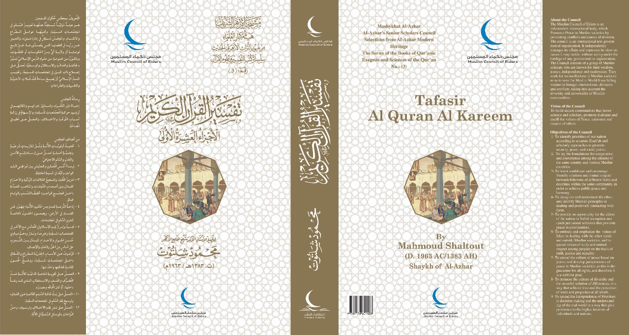 كما يضم الجناح كتب: تيسير معاني القرآن في أجزائه الثلاثين، للدكتور محمد المختار محمد المهدي، والحب في القرآن الكريم، للأمير غازي الهاشمي، عضو مجلس حكماء المسلمين، والنبأ القرآني والمقولات الأساسية في التاريخ، للأستاذ الدكتور محمد عبد الفضيل القوصي، عضو هيئة كبار العلماء، والقراءات الجديدة للقرآن بدعة العصر، للأستاذ الدكتور محمد عبد الفضيل القوصي، عضو هيئة كبار العلماء، والتفسير الواضح، في ثلاثة مجلدات، للشيخ محمد محمود حجازي، من علماء الأزهر الشريف، وتيسير التفسير للقراءة والفهم المستقيم، في ثلاثة مجلدات، للشيخ عبد الجليل عيسى، من علماء الأزهر الشريف، وإنصاف القرآن من خصومه، لعبد الحميد الرومي، من علماء الأزهر الشريف، والمنهج القويم في تفسير آيات الذكر الحكيم، للشيخ عبد الغني عوض الراجحي، من علماء الأزهر الشريف، وفكرة التوحيد في القرآن الكريم، لأبي الوفا المراغي، من علماء الأزهر الشريف، وتفسير القرآن الكريم .. الأجزاء العشرة الأولى، للإمام الأكبر الشيخ محمود شلتوت.
