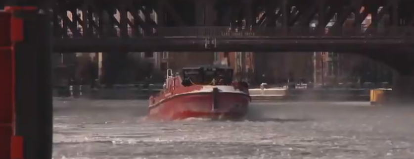 أوضح الفيديو سفينة أمريكية صغيرة تصارع التجمد في نهر شيكاغو، الذي تحول الى بقعة كبيرة من الثلج.