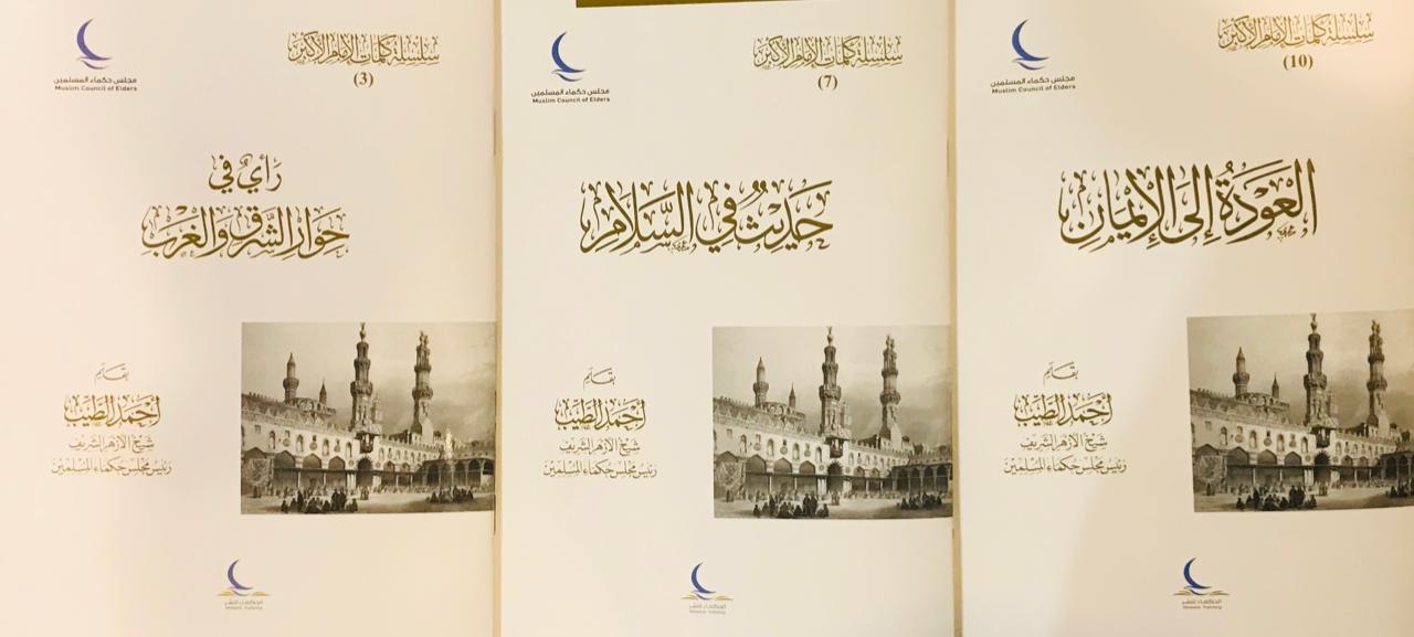 يقدم جناح الأزهر الشريف بمعرِض القاهرة الدوليّ للكتاب لزواره ثلاثة إصدارات جديدة، لفضيلة الإمام الأكبر، الدكتور أحمد الطيب، شيخ الأزهر، رئيس مجلس حكماء المسلمين، تبرز سماحة الإسلام ومكانة السلام في الأديان.