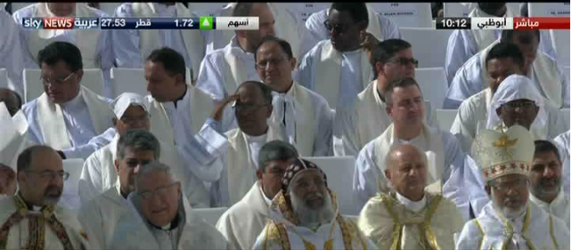 يشارك أكثر من 135 ألف شخص فى القداس بمدينة زايد الرياضية والذي يترأسه بابا الفاتيكان، البابا فرانسيس الثاني.