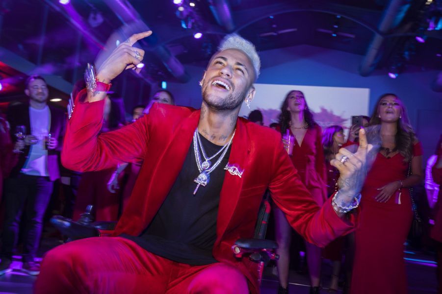 ظهر الدولي البرازيلي نيمار دا سيلفا، نجم فريق باريس سان جيرمان الفرنسي، وهو يرقص على كرسي متحرك أثناء احتفاله بعيد ميلاده الـ27، أمس، الاثنين.