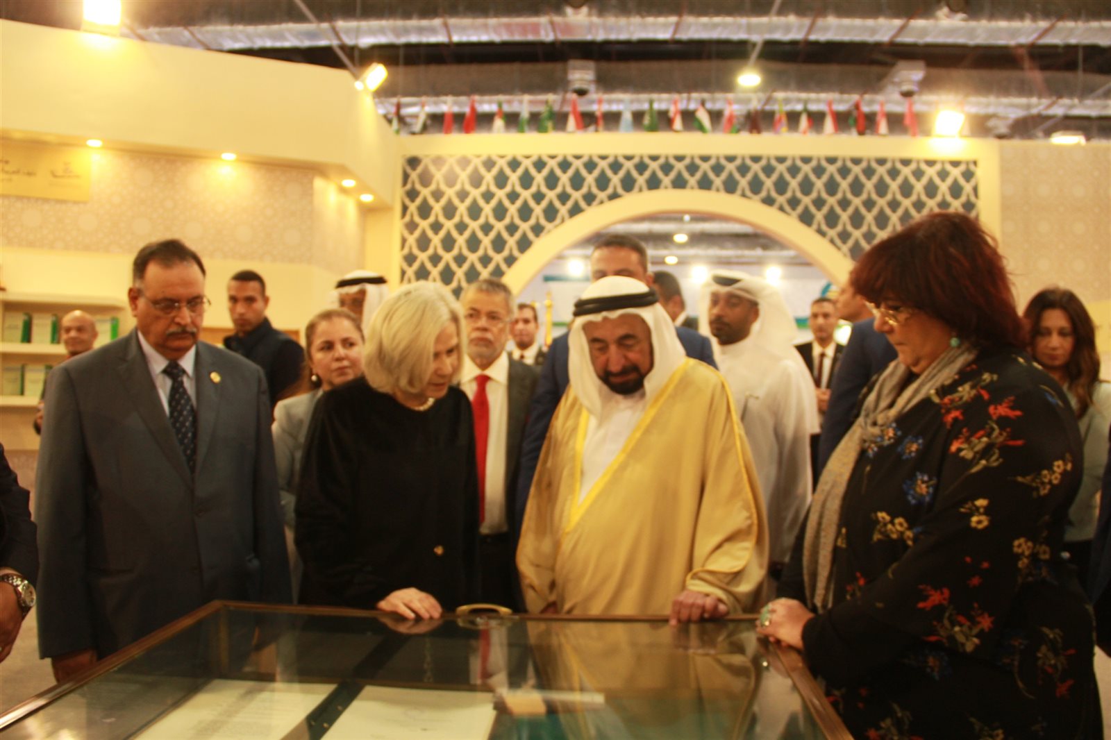 وكان في استقبال الشيخ الدكتور سلطان بن محمد القاسمي عضو المجلس الأعلى لدولة الإمارات حاكم الشارقة، الدكتورة إيناس عبد الدايم وزير الثقافة، واصطحبته فى جولة تفقدا خلالها أجنحة الوزارات والمؤسسات المصرية والدول العربية والأجنبية وبعض دور النشر المشاركة وذلك فى حضور جمعة مبارك سفير الإمارات العربية المتحدة بالقاهرة والدكتور هيثم الحاج رئيس الهيئة المصرية العامة للكتاب.