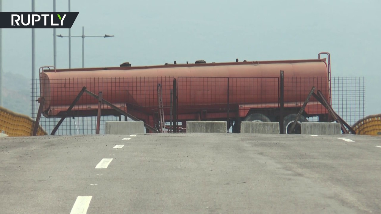 ووضع العسكريون صهريجا وحاوية بضائع كبيرة على جسر تيينديتاس الذي يربط مدينة كوكوتا في كولومبيا بمدينة أورينا في فنزويلا لقطع مرور الشاحنات عبره.