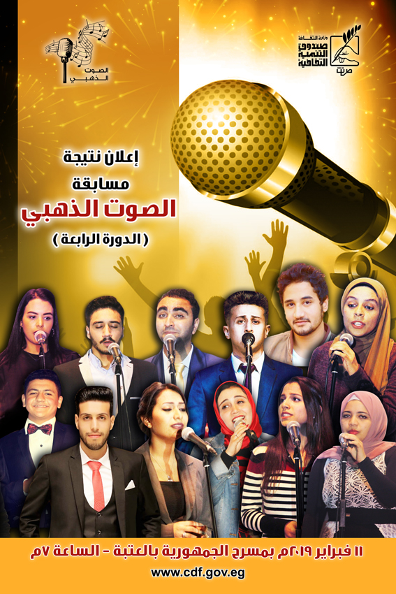 يقام في السابعة مساء الإثنين المقبل، بمسرح الجمهورية، حفل إعلان الفائزين بمسابقة "الصوت الذهبي" في نسختها الرابعة، والتي ينظمها قطاع صندوق التنمية الثقافية برئاسة ا.د فتحي عبد الوهاب.