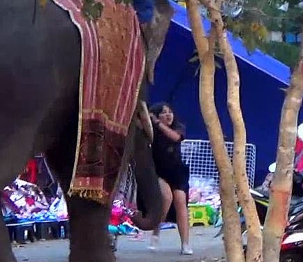 وبحسب صحيفة "ديلي ميل"، كانت الفتاة نيكاناث مانوشام ، 19 عاما ، تلتقط صورة مع الفيل في معرض ريفي في سورين ، شمال شرق تايلاند ، عندما بدأ لف خرطومه حول ساقها، ورفعها في الهواء وبدأ في الإطاحة بجسدها في كشك للاطعمة داخل السوق.