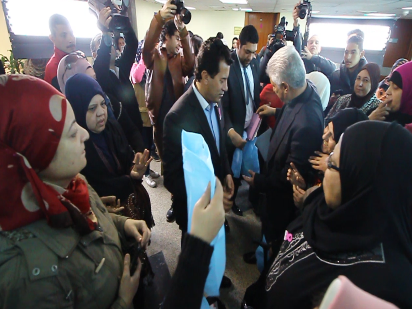 وقام وزير الشباب والرياضة بتوزيع الهدايا على المرضى خلال تواجده وذلك لزيادة الدعم المعنوي لهم وتقويتهم على مواجهة المرض والانتصار عليه .