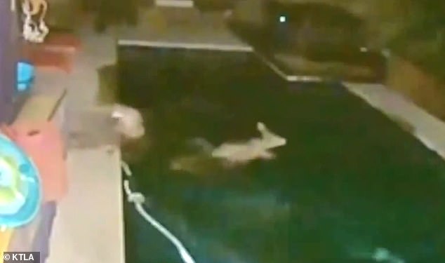 تمكنت غزالة في ولاية كاليفورنيا من إنقاذ حياتها بالغطس في حمام سباحة اثناء هربها من أسد بري جائع.