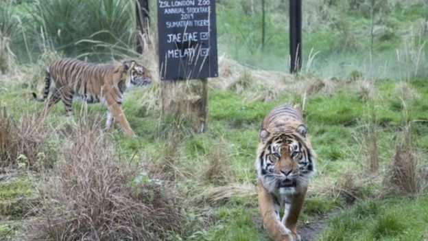 وبحسب هيئة الإذاعة البريطانية "بي بي سي"، أحضرت الحديقة النمر عاصم من حديقة السفاري الدنماركية منذ 10 أيام، ليكون شريكا لميلاتي التي كانت تعيش وحيدة في الحديقة منذ فترة طويلة، على أمل أن يألفا بعضهما، كونهما من سلالة نمر سومطرة النادرة.