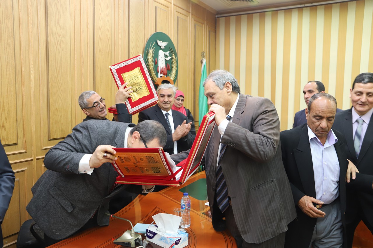 تبادل محمد سعفان، وزير القوى العاملة، ومحافظ المنوفية اللواء سعيد محمد عباس الدروع، حيث أهدى "سعفان" درع الوزارة لـ "عباس" تقديرًا له على جهوده الحثيثة المبذولة فى خدمة أبناء المحافظة، كما أهدى المحافظ درع المحافظة إلى وزير القوى العاملة تقديرًا له على جهده الجهيد فى الارتقاء بالعملية الإنتاجية من خلال عقد ملتقيات توظيفية فاعلة خدمة لشباب مصر بتوفير فرص عمل كريمة لائقة لهم، وإقامة علاقات عمل متوازنة بين طرفى العملية الإنتاجية ، ورعاية وحماية العمالة غير المنتظمة .