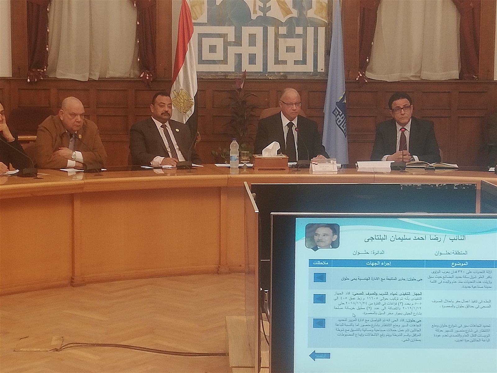 جاء ذلك خلال اجتماع المحافظ مع أعضاء مجلس النواب عن المنطقة الجنوبية بحضور اللواء أحمد فؤاد نائب المحافظ للمنطقة الجنوبية واللواء عبد القادر النوري السكرتير العام المساعد لمحافظة القاهرة ورؤساء أحياء المنطقة الجنوبية، وعدد من قيادات المحافظة.