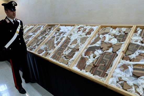 وعلى الفور أرسلت النيابة العامة ، إلى السلطات القضائية الإيطالية، المختصة إنابة قضائية، تطلب بموجبها استلام تلك الآثار، أعقبها اتصالات شخصية بين النائب العام المصرى للسلطات القضائية المختصة بايطاليا، بالتنسيق من خلال التعاون القضائى الدولى، بين مصر وإيطاليا، لاستلام تلك الآثار المهربة، وبدعم من وزارة الخارجية المصرية، وسفارة مصر بروما، وعليه فقد قررت السلطات الإيطالية الاستجابة لطلب النيابة العامة المصرية، وأمرت بتسليم الآثار المضبوطة، وتوجه فريق من النيابة العامة المصرية، مصحوبا بخبراء مصريين للآثار بوزارة الآثار المصرية إلى مدينة ساليرنو بإيطاليا، حيث تم استلام الآثار المضبوطة وشحنها إلى مصر وتسلمها وزارة الآثار المصرية لعرضها فى المتحف المصرى الكبير.