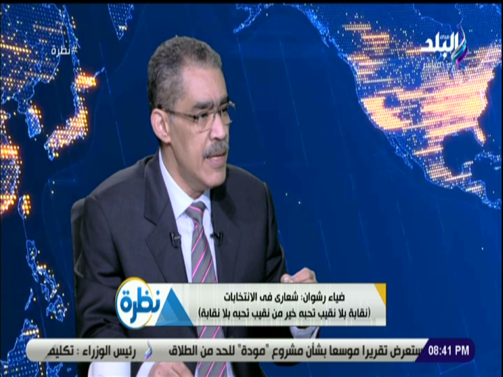 أكد "رشوان" خلال لقاء تلفزيوني مع الإعلامي حمدي رزق في برنامج "نظرة" المذاع علي فضائية صدي البلد، أن قوة النقابة ليست بقوة نقيب بعينه، ولكن تستمد قوتها من هيبة المهنة.