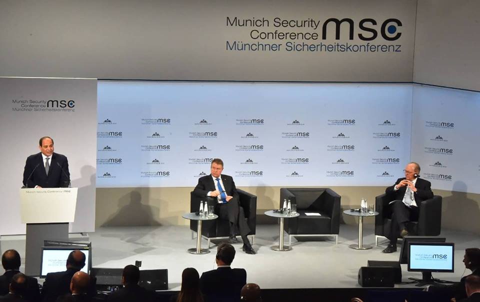 شارك الرئيس عبد الفتاح السيسي، رئيس الاتحاد الأفريقى، ورئيس رومانيا، الرئيس الحالي للاتحاد الأوروبي، فى الجلسة الحوارية، وذلك خلال الجلسة الرئيسية لمؤتمر ميونيخ للأمن صباح اليوم، السبت، والمخصصة لأفريقيا وأوروبا.