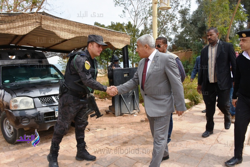 وخلال نفس الجولة تفقد محافظ أسوان أحد الكمائن الشرطية حيث قام بتحيتهم وشكرهم على الأداء الرجولى فى تأمين منطقة المعبد، مشددًا على ضرورة اليقظة التامة لمواجهة أى طوارئ ، مع توفير المظلات الحضارية لأفراد التأمين والحراسة داخل المعبد.