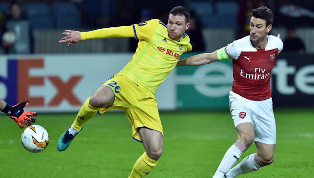 حملت مباراة آرسنال وباتي بوريسوف البيلاروسي أخبارًا سيئة بعد دقائق قليلة من بداية الشوط الثاني لجماهير آرسنال، بعدما تعرض المدافع الفرنسي وقائد المدفعجية لوران كوسيلني.