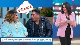 ومن جانبها طلبت الإعلامية منى الشاذلى من النجمين، تجسيد مشهد رومانسى يجمعها، بالطريقة الشعبية، ليقوم شريف بالدور بطريقة ساخرة قائلا: "بحبك ياويزو فاكرة آخر 3 سنين فى السجن، لترد وزيزو ضاحكة: "قلبى يارب".