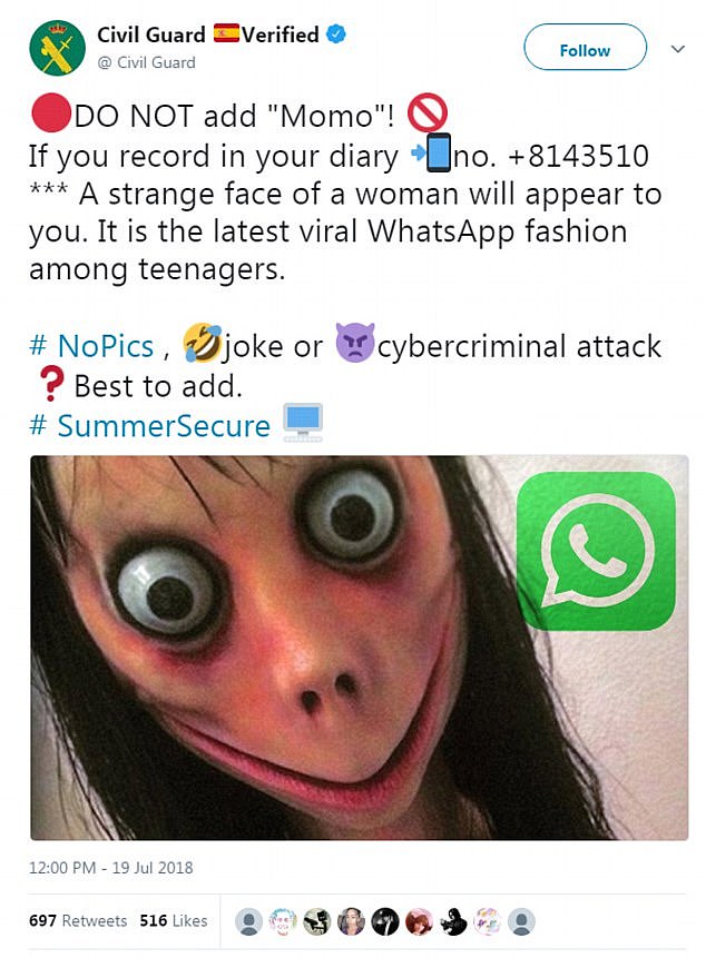ولعبة ، مومو ، عبارة عن امرأة زاحفة ذات شعر داكن ، وابتسامة شيطانية وعينين بارزتين ، تجذب الأطفال من خلال حساب WhatsApp ، ثم ترسل لهم صورًا وتعليمات عن كيفية إيذاء أنفسهم والآخرين.