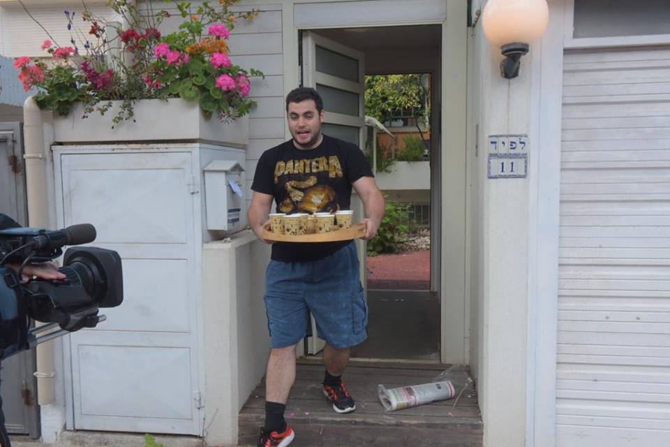 تداول نشطاء إسرائيليون ووسائل إعلام على موقع التواصل الاجتماعي "تويتر" صورة يوآف لابيد، نجل زعيم حزب "يش عتيد"، يائير لابيد وهو يقوم بإخراج أكواب القهوة للصحفيين أمام منزل والده.