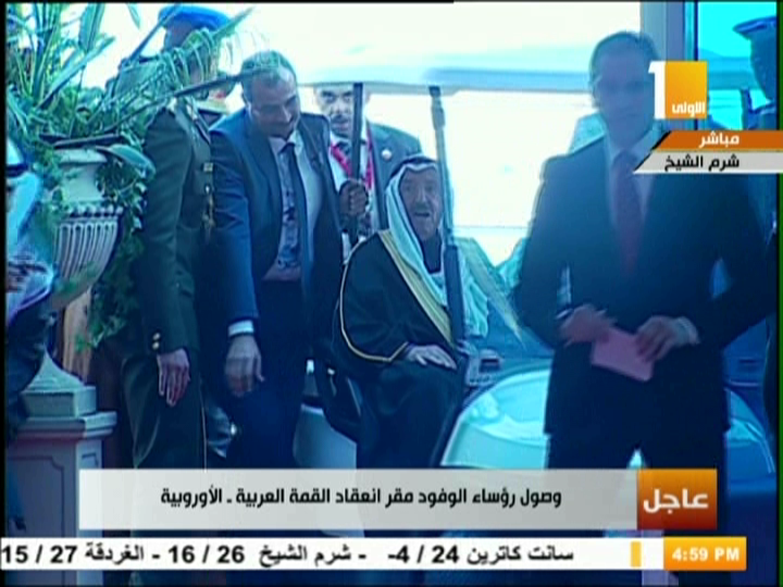 وصل أمير الكويت الشيخ صباح الأحمد الجابر الصباح، إلى قاعة المؤتمرات بمدينة السلام "شرم الشيخ"؛ للمشاركة في فعاليات القمة العربية الأوروبية، والتى ستنطلق اليوم الأحد، برئاسة الرئيس عبدالفتاح السيسي، وكان في استقباله الدكتور خالد عبد الغفار، وزير التعليم العالي والبحث العلمي.
