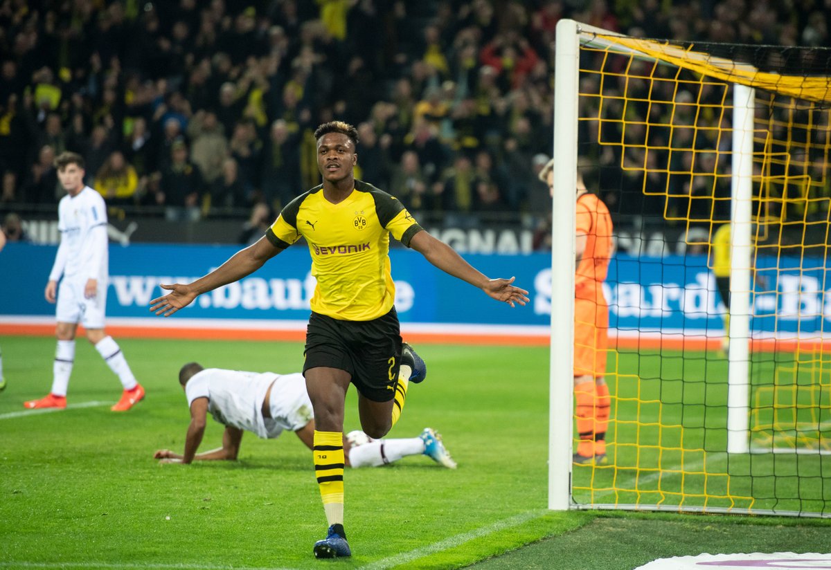سجل دان اكسل زاجادو الهدف الأول لبروسيا في الدقيقة 30 برأسية رائعة بعد عرضية من أكسل فيتسل، قابلها زاجادو برأسه معلنًا عن الهدف الأول لفريقه ، وعادل كيفن فولاند النتيجة لليفركوزن في الدقيقة 37 ، ولكن فرحته لم تدم كثيرًا ، وأضاف سانشو الهدف الثاني لبروسيا في الدقيقة 38 ، لينتهى الشوط بتقدم بروسيا دورتموند بهدفين لهدف.