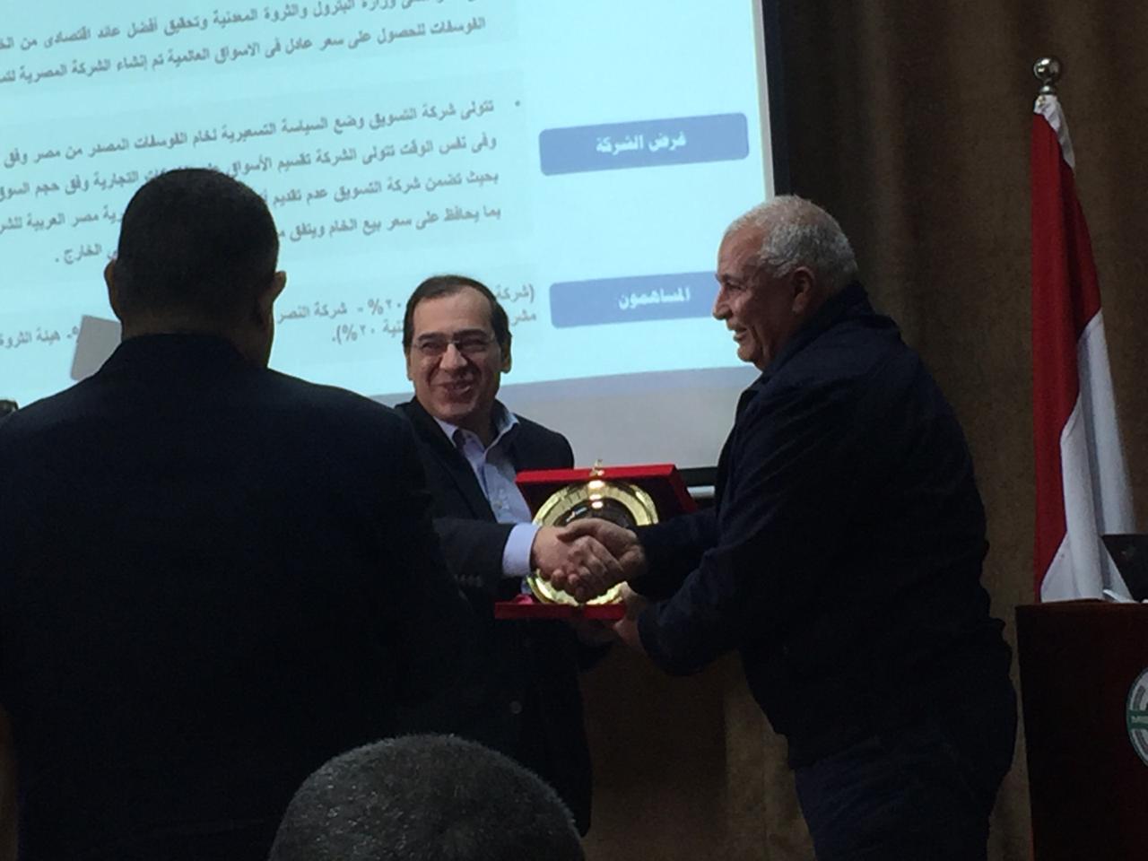 جاء ذلك عقب إلقاء وزير البترول كلمته التى أكد خلالها أن الوزارة تعمل حاليًا على تهيئة المناخ الاستثماري الجاذب لتنمية واستغلال الثروات التعدينية التي تزخر بها مصر، وفقًا لرؤية وأهداف الدولة في تحقيق التنمية المستدامة من خلال إقامة مشروعات اقتصادية تحقق القيمة المضافة لثروات مصر التعدينية.
