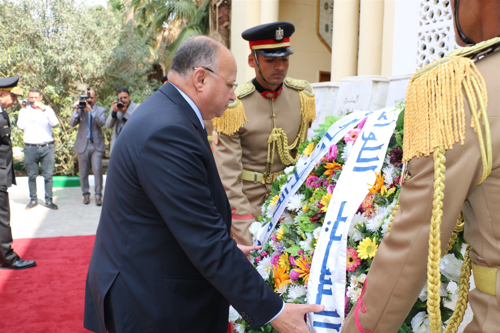 محافظ القاهرة يضع إكليلا من الزهور على مقابر الشهداء
